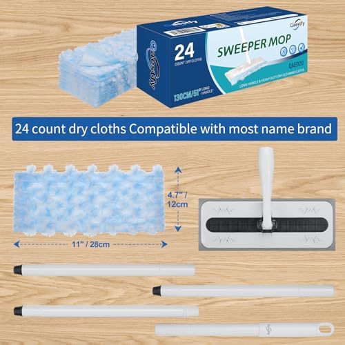 【24 Count Unscented Dry Sweeping Cloths Included】Comes with 24 disposable mop refill pads (11”/28cm x 4.7”/12cm). This size compatible with most name brand sweeper mop starter kit. Apart from the long handle, our refills is also cost-effective for your family.