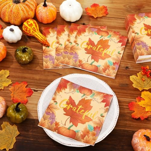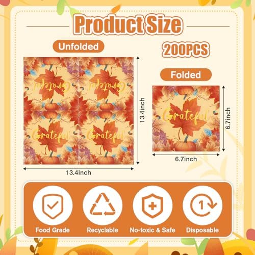 Our Thanksgiving Napkin Set: you will receive 200 Thanksgiving napkins with unique and rich style and pattern design, which is enough quantity to meet your daily or party use and replacement needs; The napkins are printed with delicate pumpkin and maple leaf patterns and Happy Thanksgiving greetings, which are eye catching and elegant, and can effectively express your welcome and blessings to your guests at the party