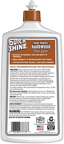 Quick Shine brand provides consumers with superior floor care products that are designed with the environment in mind. Now Quick Shine offers the High Traffic Hardwood Combo Pack to clean AND protect your hardwood floors. The Quick Shine Hardwood Floor Cleaner naturally cleans dirt, grease and scuff marks without harsh alkalis or ammonia and leaves no haze, streaking or sticky film. We recommend using the floor cleaner with the Quick Shine Spray Mop Kit to make floor cleaning quick and easy. When it is time to renew the look of your floors, turn to the Quick Shine Floor Luster for a long lasting, deep rich shine. It has no noxious fumes and never has to be stripped. We recommend using the Quick Shine Hardwood Mop Kit for quick and easy application. Simply squirt on to a clean dry floor and apply with a dampened mop (should not be used in spray mops). Quick Shine floor care products are certified as using safer chemistry practices and has an ammonia and formaldehyde-free formula. Even the bottle is made from post-consumer recycled plastic. The Quick Shine Hardwood Floor Cleaner and Luster’s ease of application and ready-to-use formulas makes floor care a breeze. Seeing is believing – It is like a new floor in a bottle!