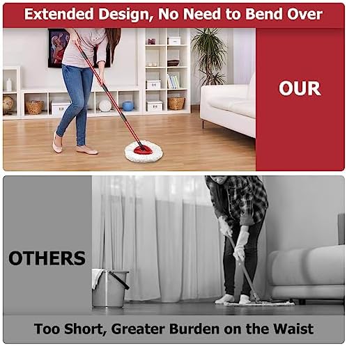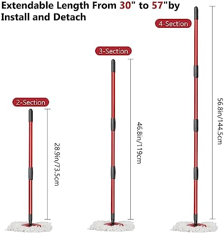 【Make Cleaning Easier】- The detachable 4-part mop handle is designed to get to the toughest places to clean. The spin mop handle can reach any corner of your home for better corner cleaning without having to bend over.Each handle comes with a plastic protective cover,allowing you to quickly exchange the handle without hurting your hands.