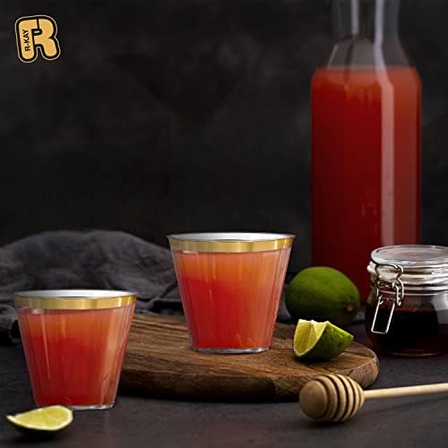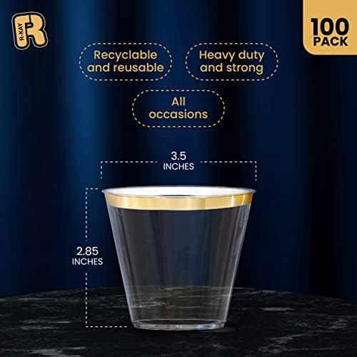 R-kay 100 Pack Gold Plastic Cups For Party – Plastic Cups 9 oz – Party Cups Disposable – Premium Heavy Duty Gold Cups – Disposable Wine Glasses For Wedding – Plastic Wine Glasses/Disposable Cups
