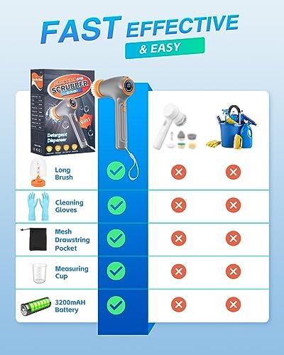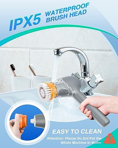 𝐔𝐬𝐞𝐫 𝐅𝐫𝐢𝐞𝐧𝐝𝐥𝐲 𝐚𝐧𝐝 𝐄𝐚𝐬𝐲 𝐭𝐨 𝐂𝐥𝐞𝐚𝐧: Engineered for convenience, our electric spin scrubber boasts a user-friendly, easy-to-clean design with the added benefit of IPX5 waterproof reliability. This means you can confidently use cordless electric spin scrubber in wet environments such as bathrooms and kitchens, and when it’s time for cleanup, the power spin scrubber is a breeze to disassemble and maintain. Enjoy hassle-free cleaning with peace of mind.