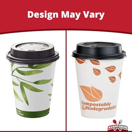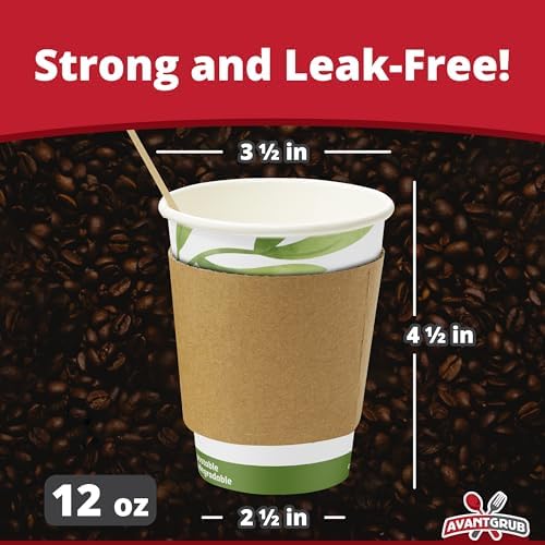 Recyclable Biodegradable Hot Drink Cups 12 Oz 100 Pk of Compostable Paper Mugs, Wood Stirrers and Cardboard Coffee Sleeves. Bulk 12oz Beverage Supplies Set Perfect for Eco Friendly Business or Cafe.