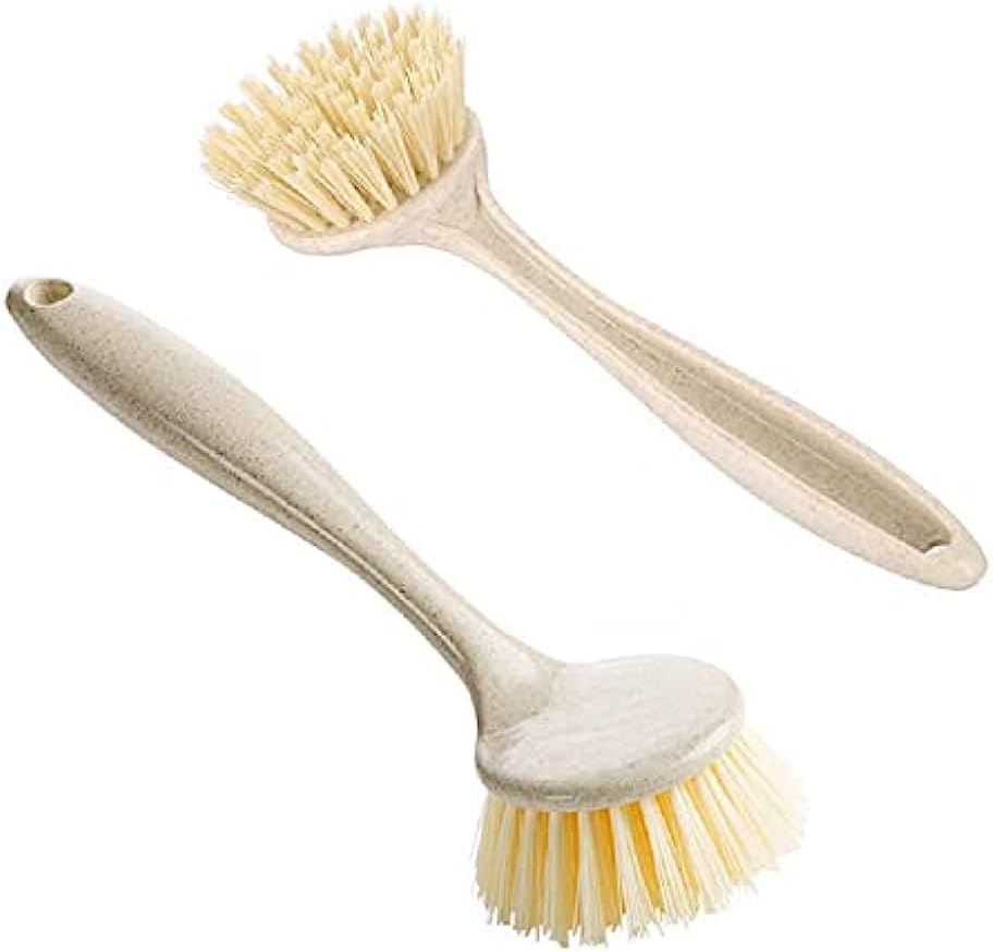 The long handle allows them to reach down to the bottom of deep pots. The bristles are good for prewash of dishes before going into the dishwasher. You can throw them in the dishwasher on the top rack.