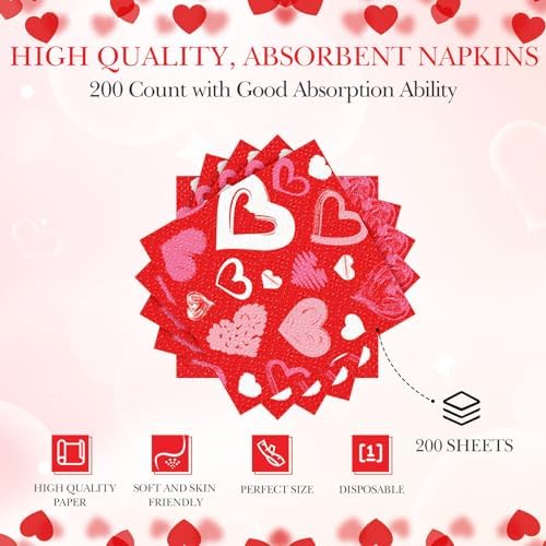 Enough for Your Guests: our package includes a set of 200 pieces of decorative paper napkins; This ensures you have enough supplies for your celebratory gathering, be it a quiet romantic dinner for two or an elaborate Valentine’s Day party with friends and family, ideal for office, living room, kitchen, bedroom and so on