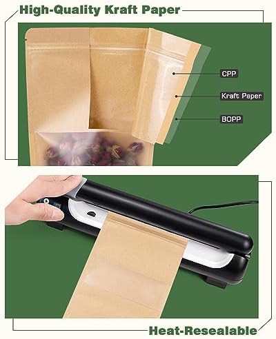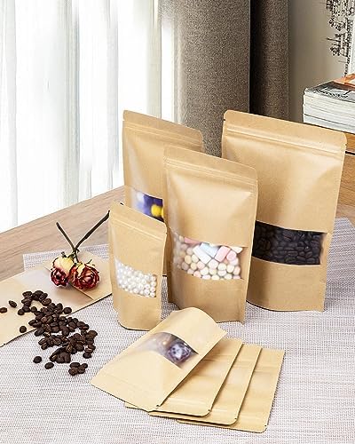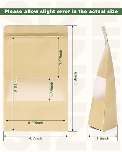 Each reusable kraft paper bags measures 4.7×7.9 inches( external size ), the window height is 1.73 inches.Please check the size carefully before ordering.