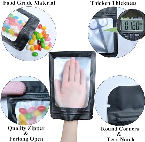 These reseable bags use Thicken Thickness (0.16mm, better than normal 0.12-0.14mm in the market), will provides better Puncture Resistance and heat seal perfomance. Avoide embarrassing situations like items leakage, or too thin material causing Melting during heat sealing