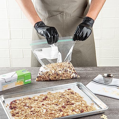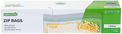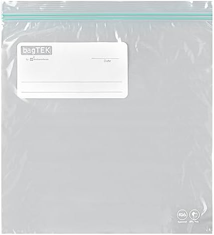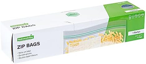 Conveniently pack your dishes using our Bag Tek 1-gallon Clear Plastic Zip Bags. Made with high-quality PE plastic, these zipper bags are sturdy and have a thickness of 1.66 mils. The interlocking double zipper of these clear plastic zip bags creates a tight seal to keep air out, extending the freshness of the food inside. To avoid thumb fumbles while opening, these zip bags feature grip strips at the lips. With a write-on-label on the outside of these zipper pouches, you can mark information about the contents inside for easy identification. The greaseproof material of these zip-top bags allows you to store saucy and greasy food items without any messes. These disposable storage bags with zippers are recyclable to reduce your carbon footprint. The hot and cold-friendly design of these BPA-free zipper-lock bags lets you keep a variety of products inside. Measuring 10.75 inches long by 10.5 inches wide, these zip-seal bags have a capacity of 1 gallon, making them an efficient and space-saving way to store foods. Shipped in a 25 count box.