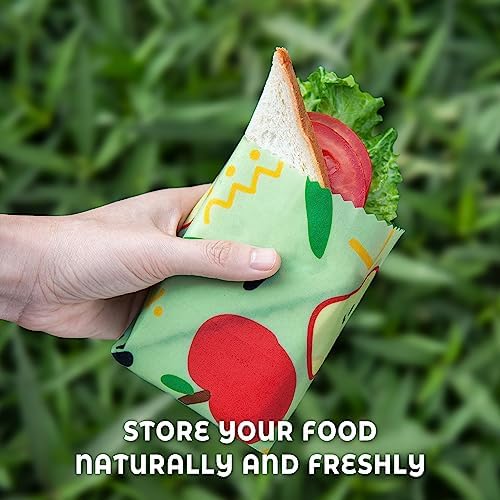 ♻️ FOOD STAYS FRESHER FOR LONGER: Our premium reusable food wraps with beeswax are not only environmentally friendly and highly sustainable it also makes sure your food stays fresher for longer. Our food wraps s can create air tight seals which will keep your food fresh and delightful. Now you can keep your sandwich, cheese, fruit and leftovers wrapped up and maintain flavor of your food.