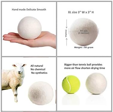 These are extra large size balls in 3 inches diameter as they tumble around in the dryer, bigger size of wool dryer balls lift and separate laundry allowing more hot air to circulate better.