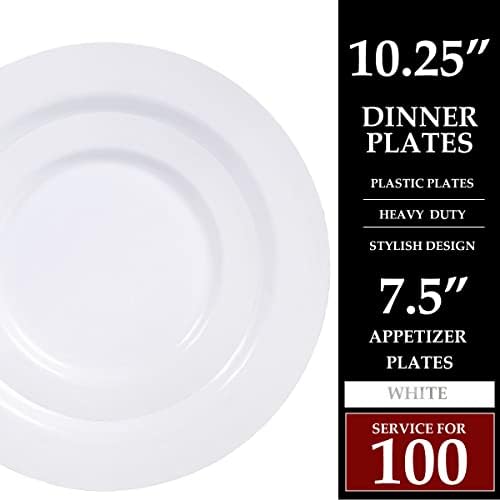 REASONABLE CONFIGURATION: One box of our white plastic plates includes 50 10.25-inch white dinner plates and 50 7.5-inch salad plates. Different sizes of plastic plates work together to provide you and your guests with high-quality table service.