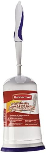 Fully-bristled head for all-around cleaning. Synthetic bristles provide durability, excellent bristle bend recovery and shear/break strength. Plastic handle and holder are durable and easy to clean. Holder provides handy, efficient storage to keep the brush off the floor. Made in the USA. Rubbermaid Toilet Bowl Brush with Caddy Holder, with Caddy Holder, Cobalt Blue (FG6B9204COBLT).