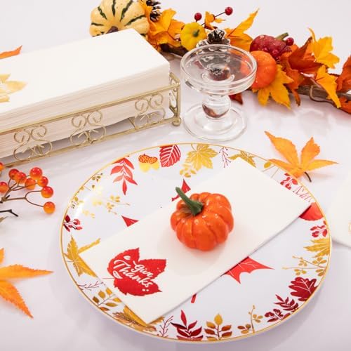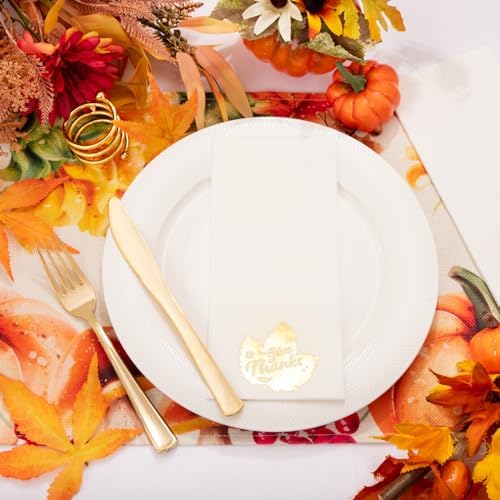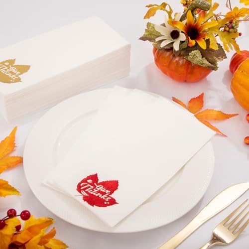 Abundance for All: The white napkins disposable pack includes 25 pcs gold maple leaves napkins, 25 pcs red maple leaves napkins ensuring you have enough for family dinners or entertaining guests during the holiday season.