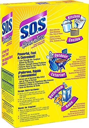 S.O.S Clean n Toss Steel Wool Soap Pads have all the scrubbing power of our Regular S.O.S pads, but in a convenient single-use size. These pads have the powerful combination of steel wool and biodegradable soap and detergents to cut through the greasiest pots and pans to baked-on oven racks and barbeque grills. You can also use them to remove rust, hard water stains and soap scum. The handy size makes it perfect to clean those hard-to-reach nooks and crannies. To clean with this soap pad, simply wet it with water before use. When finished, rinse the area with clean water and discard the used soap pad. Ideal for use in restaurants, cafeterias, hotels, break rooms and other commercial facilities. Cleaning is quick and easy with S.O.S.