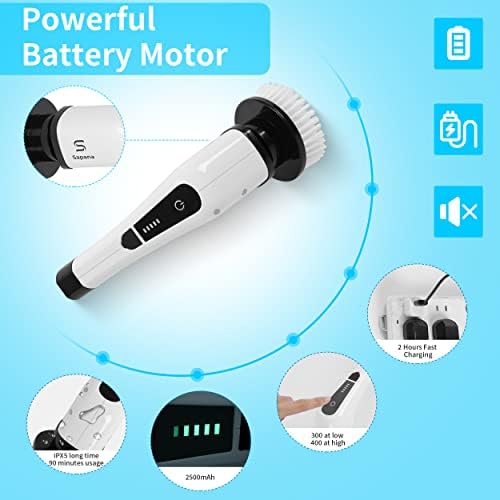 SAPANA Electric spin scrubber is the best as compared to the others because it has a great power battery, a long dimension adjustable handle,2 rotation modes, and 8 replaceable power cleaning brushes.