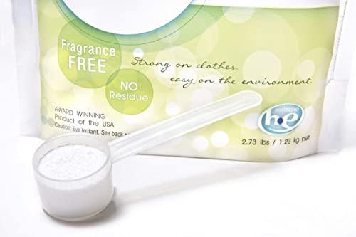 Innovative and resealable package – scoop included. Less packaging than heavy laundry detergent jugs; Package is 2.73 Lbs.. (or 1.23kg) for 108 standard loads