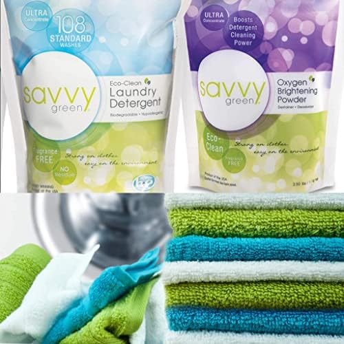 Savvy Green 108 Wash Fragrance Free Laundry Detergent and Savvy Green Oxygen Brightening Powder – Super-Concentrated