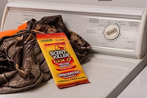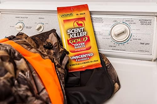 Scent Killer Gold Dryer Sheets Premium and Unscented 18 sheets in a resealable pack