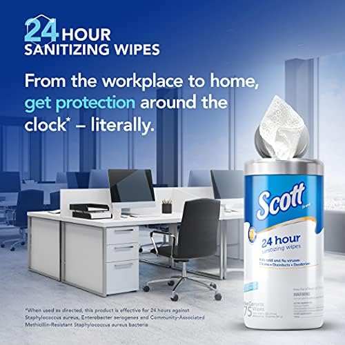 DESIGNED FOR HOME & BUSINESS: Scott 24 Hour Sanitizing Wipes are safe to use on all non-porous, non-food-contact surfaces in the home, office, classroom, gym, or childcare facilities