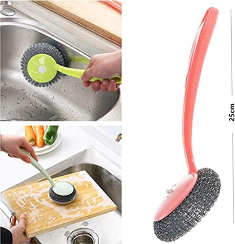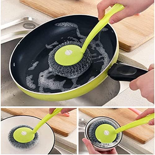 High-Quality Stainless Steel: These scouring pads ball are made of stainless steel, which is durable, can provide long term service, will not easy to rust or scatter, and package included 1piece of long handle and 8pcs of cleaning scouring ball brushes.