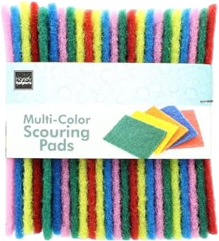Cut through tough messes in kitchens, bathrooms, automobiles, tools, walls and more with this 24-piece Multi-Colored Scouring Pads Set. Comes with two each of the following colors: blue, green, pink, red and yellow. Pads measure approximately 3 3/4″ x 5 3/4″. Comes packaged with a wrap around.
