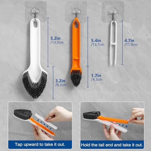 The scrub cleaning brush features a large triangular head that offers a greater contact area, making it ideal for cleaning stoves, shower doors, wall tiles, and window frames. Additionally, the small cleaning brush is designed to effectively remove dirt from narrow spaces.