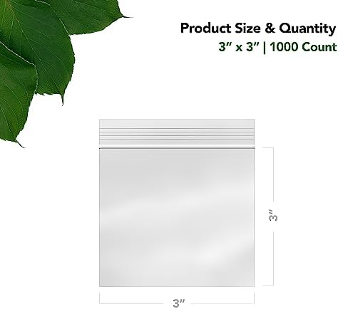 [SIZE]: 1000 Count – 3” Width X 3” Length, 2 Mil – Length Excludes Zip Flap