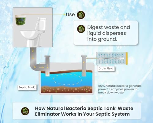 Natural Bacteria Septic Tank Waste Eliminator EcoSeptic is an Active Bacteria Septic Tank Treatment that is specially designed to break down waste materials and maintain a properly functioning septic tank system. This will help lower the chances of annoying and expensive septic tank backups and problems. (Regular pumping of your septic system and other septic maintenance may be needed. This should not be considered a substitute for that.) Directions: Mix 4 Tablespoons of EcoSeptic treatment with 16 ounces of warm water. Mix and pour directly into the toilet and flush. Apply once a month for best results. It is very important to do this consistently. For larger homes or septic tanks over 1000 gallons, double the recommended treatment. How does it work? Each treatment contains billions of live bacteria that are activated when exposed to water. The benefits of having them in your septic tank is that they break down waste materials. Therefore, helping prevent backups and other problems which can be very expensive. Store in a dry place and avoid exposing treatment to moisture. Warning: Keep out of reach of children. May cause eye irritation. If in eyes, rinse with water for several minutes. If eye irritation persists, seek medical attention. Do not inhale or ingest. For contact with skin, rinse thoroughly and seek medical attention if an irritation occurs.