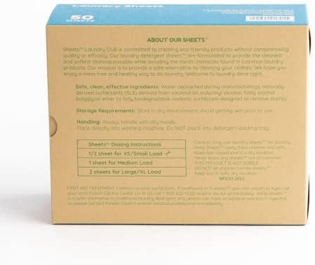 Sheets easy to use 1 sheet and go application gives you the right amount-every time. Just drop 1 sheets from our recyclable box into the washer and you’re done. Uses no Dyes, or artificial brighteners. Compatible with front and top loading, high efficiency washing machine.