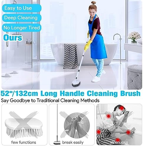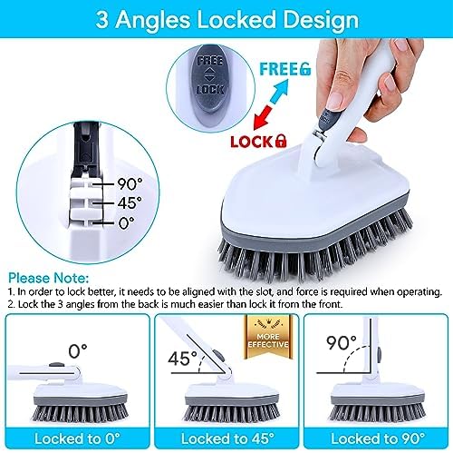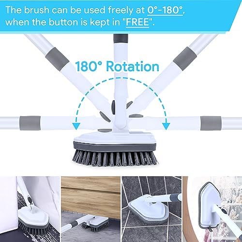 ✔️【180° Rotation & 3 Angle Locking Design】The upgraded tub and tile scrubber head can be rotated 180°, allowing you to easily access corners and other hard-to-reach places. Scrub brush with long handle can also be locked at 3 angles (0°, 45°, 90°) to avoid the shower cleaning brush head flipping back and forth when cleaning. Tub scrubber design is ergonomic and can meet cleaning needs from different angles. Warm Tips: It is recommended to use at 45°, which will be more efficient!
