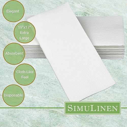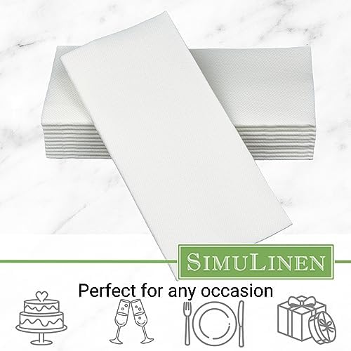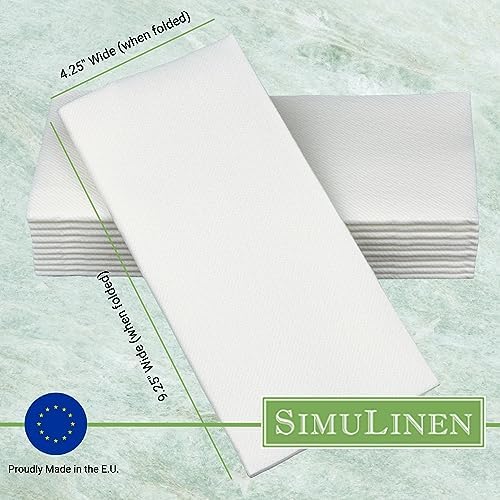 ELEGANT: Our design & texture are created to imitate the refined appearance of cloth, adding a touch of sophistication to the table. Absorbent: Our napkins are designed to quickly & effectively absorb moisture. Cloth-like Feel: SimuLinen’s materials are carefully chosen to replicate cloth, providing a pleasant texture & enhancing the overall dining experience. Disposable & Recyclable: Unlike actual cloth, SimuLinen products are intended for single-use and can be easily disposed of after use.