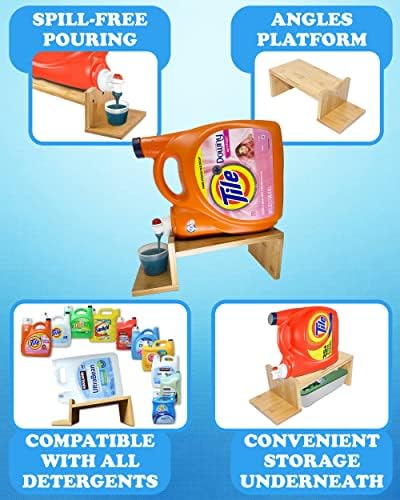 The Wood laundry detergent holder and the drip tray are the perfect way to keep your laundry room organized and your laundry detergent easily accessible. The detergent organizer for the laundry room is made of durable wood and can be used as a liquid laundry detergent dispenser or fabric conditioner laundry soap catcher tray. The tray catcher laundry is a perfect addition as a wooden soap dispenser to your sud station detergent organizer