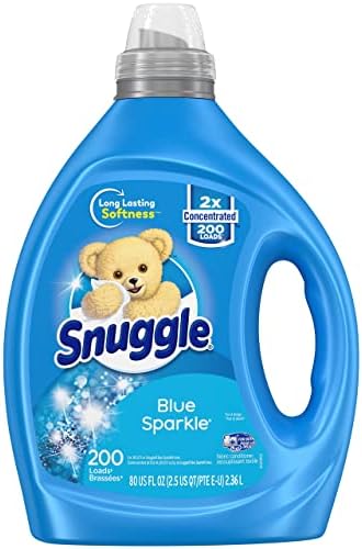 Snuggle’s original Blue Sparkle scent is a fresh and clean blend of white floral and bright green citrus notes that snuggle up to warm woody notes and soft musk for a comforting, long-lasting freshness your family will love. Using fabric softener in the wash can provide better softness, better freshness, reducing wrinkles, and reducing static cling to the fabrics in your clothes, towels, and sheets. This concentrated formula delivers 2X more softening in every drop. So now you don’t have to use as much to leave your clothes Snuggly soft. Safe for standard and HE washing machines. Includes one 80 ounce bottle of liquid fabric softener.