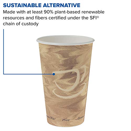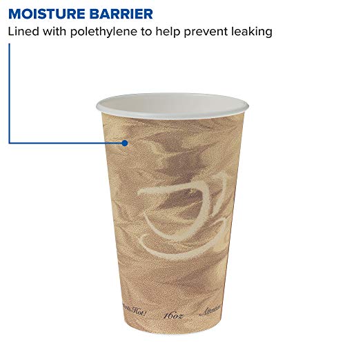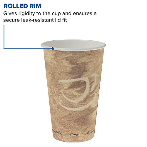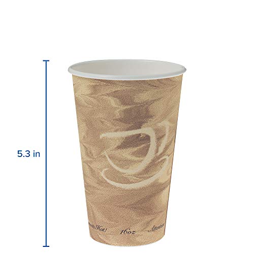 This SOLO 316MS-0029 disposable 16 oz. paper hot cup with Mistique print has a polyethylene lining for resistance to leaking and moisture penetration, and a rolled rim for rigidity and strength. It is suitable for serving coffee, tea, hot chocolate, and other hot beverages. This paper cup withstands beverage temperatures up to 205 degrees F. It is 5.3″ high, has a 3.5″ diameter, and is compatible with SOLO TLB316-0004, TLN316-00013, TLP316-0007, LK316W-0007, LK316B-0004, and LB3161-00007 lids (sold separately).
