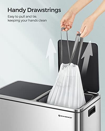 [Convenient Drawstrings] The drawstrings allows you to pull, tie, and carry the bag out in one go. They also ensure a tight grip on the can, keeping the tall kitchen trash bag in place and hidden after closing the lid