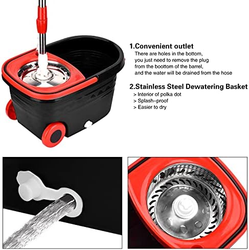✨【Wide Application】The spinning mop and bucket is wet or dry usage, 360° microfiber spinning mop head easily reaches any difficult corners and gaps without feeling the scrape, with excellent absorption capacity, deep-cleaning microfiber removes and absorbs tough dirt, dust, pet hair, grime, perfect for all types of surfaces, like laminate, hardwood, ceramic, tiles, glass, etc. Microfiber Mop Head is machine-washable and reusable.
