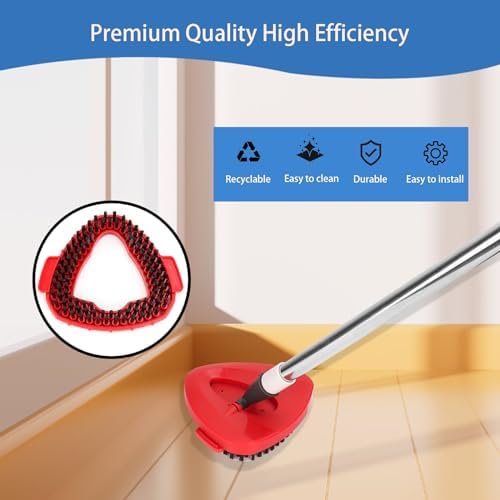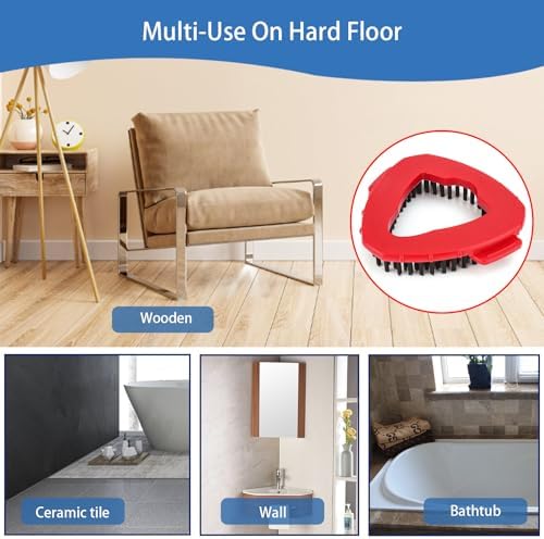[Multifunctional Shower Cleaning Brush]: The triangular shape and stiff bristles scrubber enable you to clean a wide range of surfaces, including bathroom tiles, bathtubs, shower tiles, kitchen floors, walls, glass, baseboards, windows, doors, grout, sinks, countertops, toilets, and narrow spaces around the toilet.