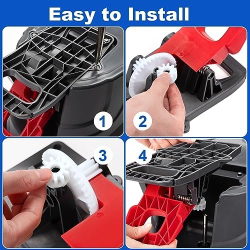 Easy to install: Flip the mop bucket over, unscrew 4 screws on the mop bucket. Take off the foot pedal from the pail. Take off the worn-out gear sprocket. Put on the new one. Then re-install the foot pedal.