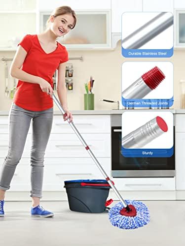 【ADJUSTABLE MOP STICK 】 Crafted with high-quality stainless steel material for durability. 4-section handle can be adjusted from 30in to 58in. Perfect for users of all heights. Find your ideal cleaning comfort