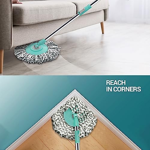 Spotzero by Milton Classic Spin Mop Bucket on Wheels, Extendable Handle | Liquid Dispenser| Wringer Set | 360 Spinning Mop Bucket Floor Cleaning & Mopping System with 2 Microfiber Refills, Aqua Green