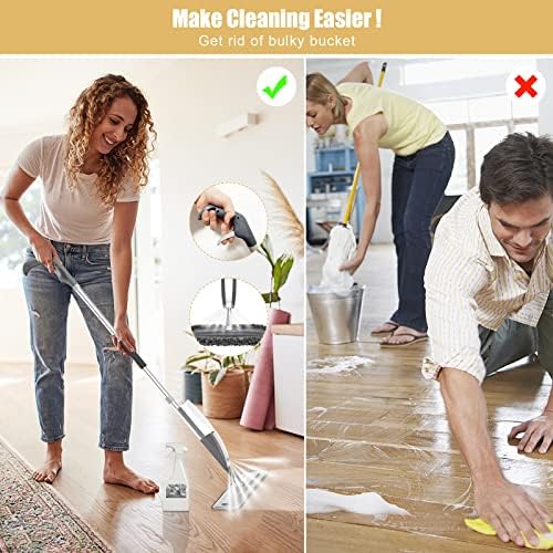 【Premium quality 】The connection of spray mop with washable pads adopts specific craftsmanship for anti-leakage, Improved the problem of leakage of other floor mops after use . Highly durable aluminum alloy mop handle for long-term use.