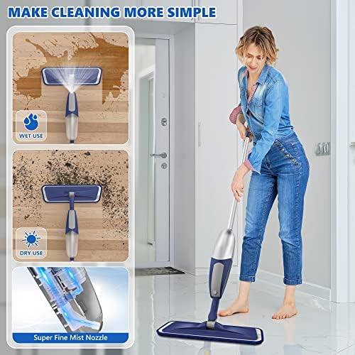 4Pcs Washable Replacement Pads:The spray floor mop for laminate floor cleaning comes with 4 reusable microfiber mop pads,which are machine washable up to 100 times and super absorption, durable and economical,so that can provide excellent cleaning for your household work.These floor mop refill cloths can easily attach to the flat floor mop head with velcro and remove for effortless.The dust mop pads can easily absorb most dirt on hard floors,such as sewage,hair,animal hair,dust,solid debris,etc.