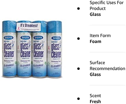 Sprayway Glass Cleaner Heavy-duty cleaning action, without ammonia. Foaming action clings and dries quickly with no residue or streaking. Economically priced, one can outlasts two 32 oz liquid trigger sprayers.