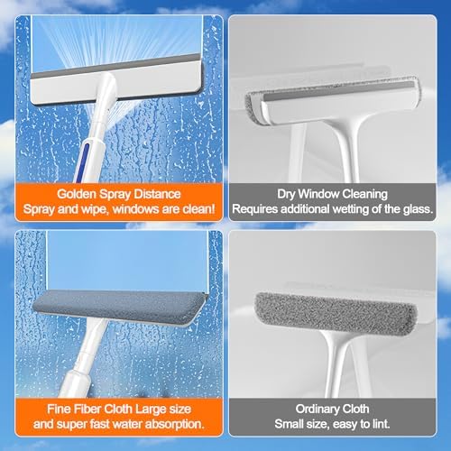 Squeegee for Window Cleaning with Spray, 3-in-1 Double-Sided Spray Expansion Window Cleaner, Squeegee for Glass & Window Cleaning with Adjustable Telescopic Pole & 3 Cloth, Household Cleaning Tools