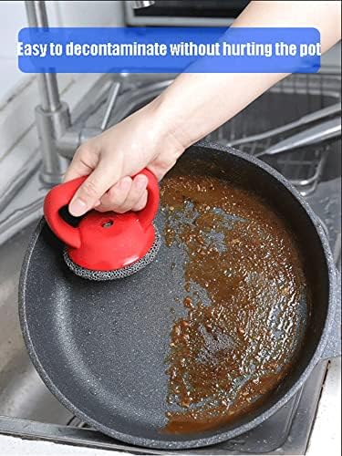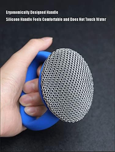 【Good grip pan brush】: The handle is made from food grade silicone that’s expertly molded to comfortably fit in your hand. The chain mail cleaner part is linked by Hundreds smaller 316 stainless steel ring that is machine soldered.