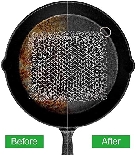 The Easy, Fast and Safe Way to Clean Your Pots and Pans. Cast Iron Chainmail Scrubber, made for the Cast Irons, protect the accumulated seasoned layer, no soap or detergent.
