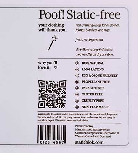 MADE IN USA: We are a family, woman owned business with a mission to bring a static free confidence to everyone. Eco & ozone friendly, Non-staining, Non-accumulating, Non-toxic, Non-propellant, Non-flammable.