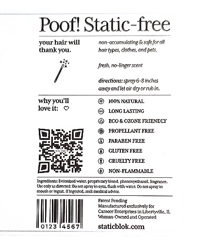 MADE IN USA: We are a family, woman owned business with a mission to bring a static free confidence to everyone. Eco & ozone friendly, Non-staining, Non-accumulating, Non-toxic, Non-propellant, Non-flammable