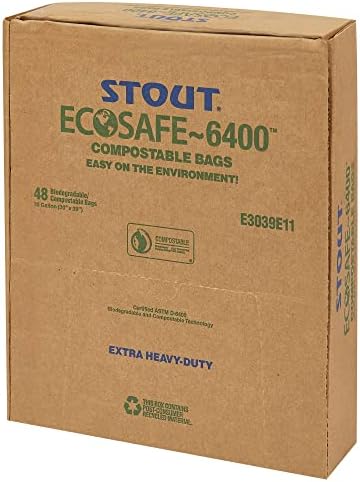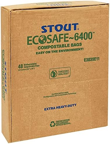 STOUT by Envision E2430E85 EcoSafe-6400 Compostable Bags, 24″ x 30″, 13 gal capacity, 0.85 mil thickness, Green (Pack of 45)