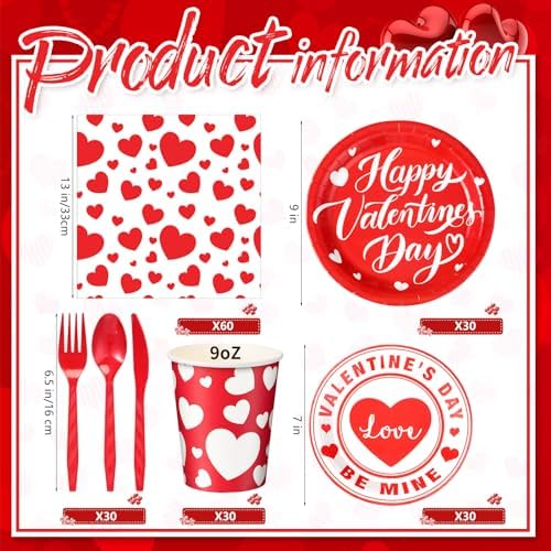 Quality Material: our Valentine’s Day disposable tableware is made of quality materials; The napkins are soft and highly absorbent, perfect for wiping up spills or messes, safe and non toxic recyclable disposable paper plates and cups, and quality food grade plastic forks, safe and reliable